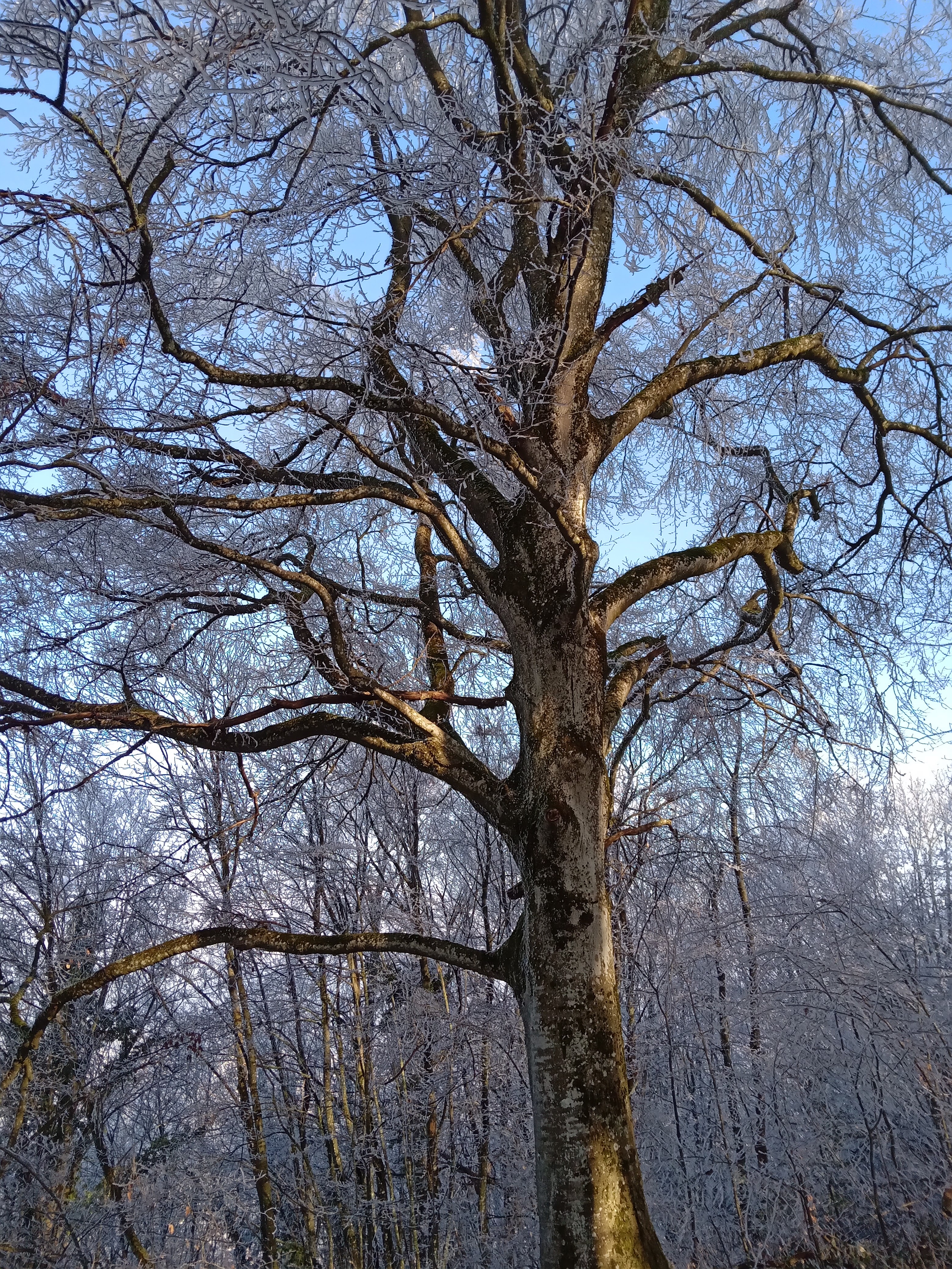châtaigniers et de chêne dénudés dont le plus remarquable devant la ferme Saint